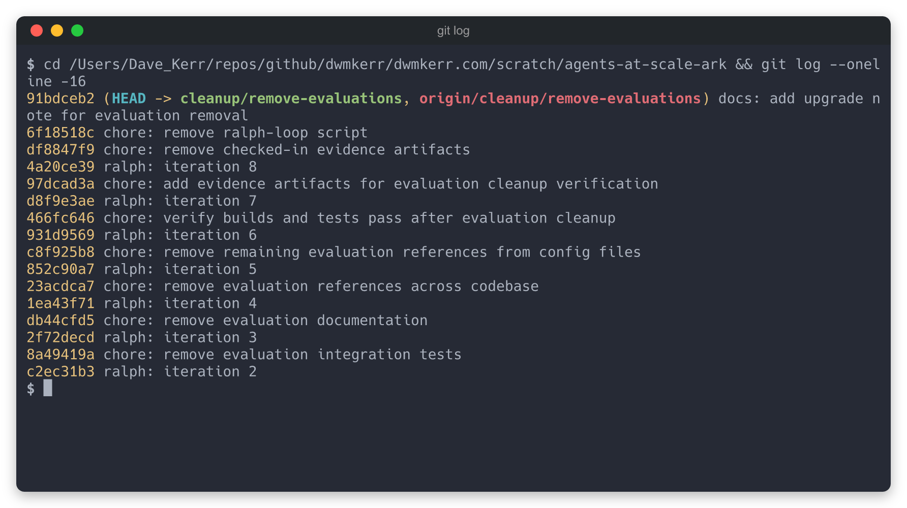 This took 8 iterations. Here’s the git log: